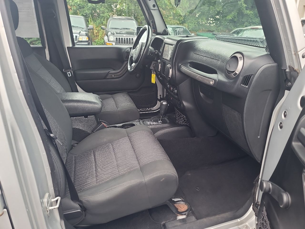 Looking for an adventure-ready ride that's as tough as it is stylish? Look no further than this Silver 2012 Jeep Wrangler Unlimited! Powered by a 3.6L V6 engine with variable valve timing, this beast is ready to tackle any terrain with its Command-Trac shift-on-the-fly 4WD system and next-generation Dana axles. Whether you're hitting the trails or cruising through the city, this Wrangler's got you covered with its sporty design and aggressive stance. Inside, you'll find a practical interior with features like reclining front seats, steering wheel mounted audio controls, and plenty of storage options. This rugged SUV is equipped with safety features like electronic roll mitigation, anti-lock brakes, and front and side airbags to keep you and your passengers secure on the road.